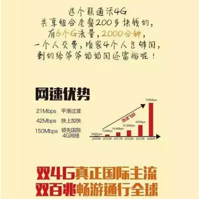 4G手机、高速宽带、沃家电视全都有,一次办理满足全家需求!流量、短信、语音随心选,全家共享更欢乐!